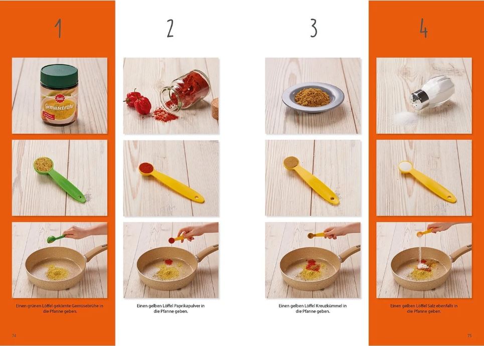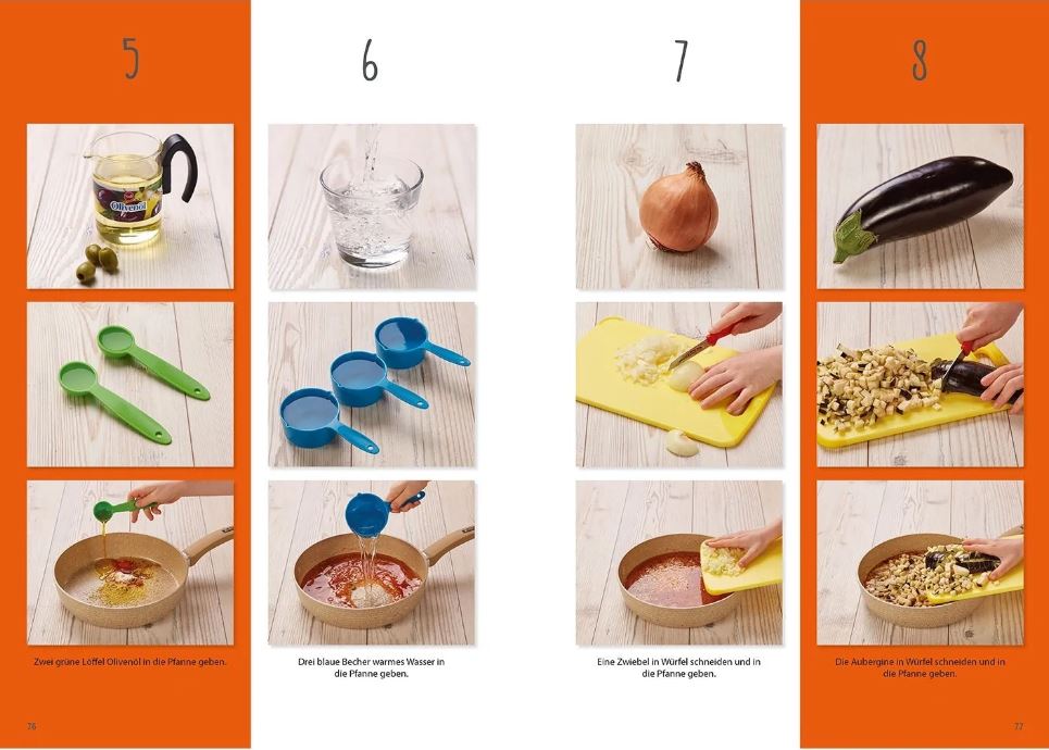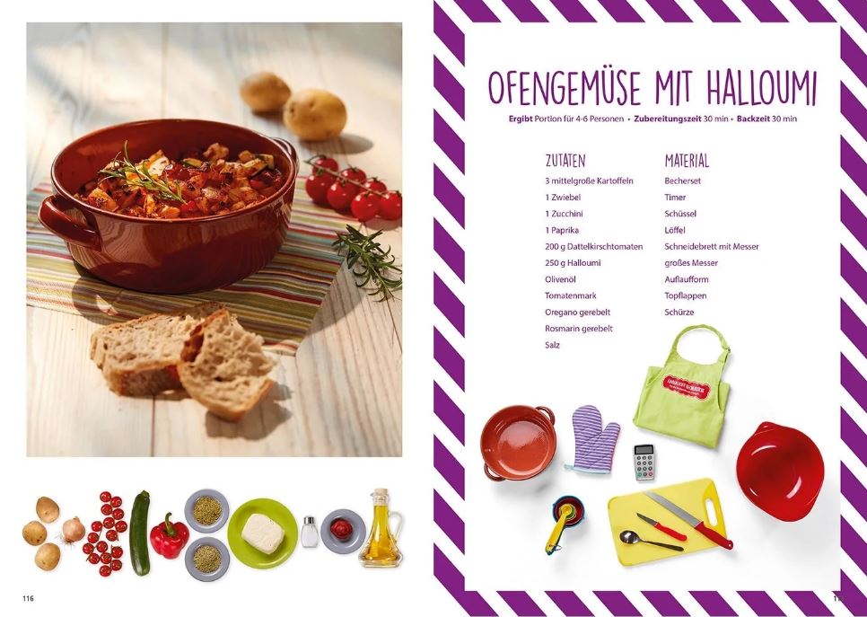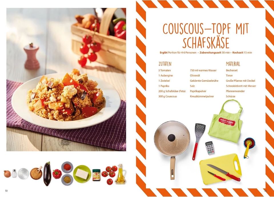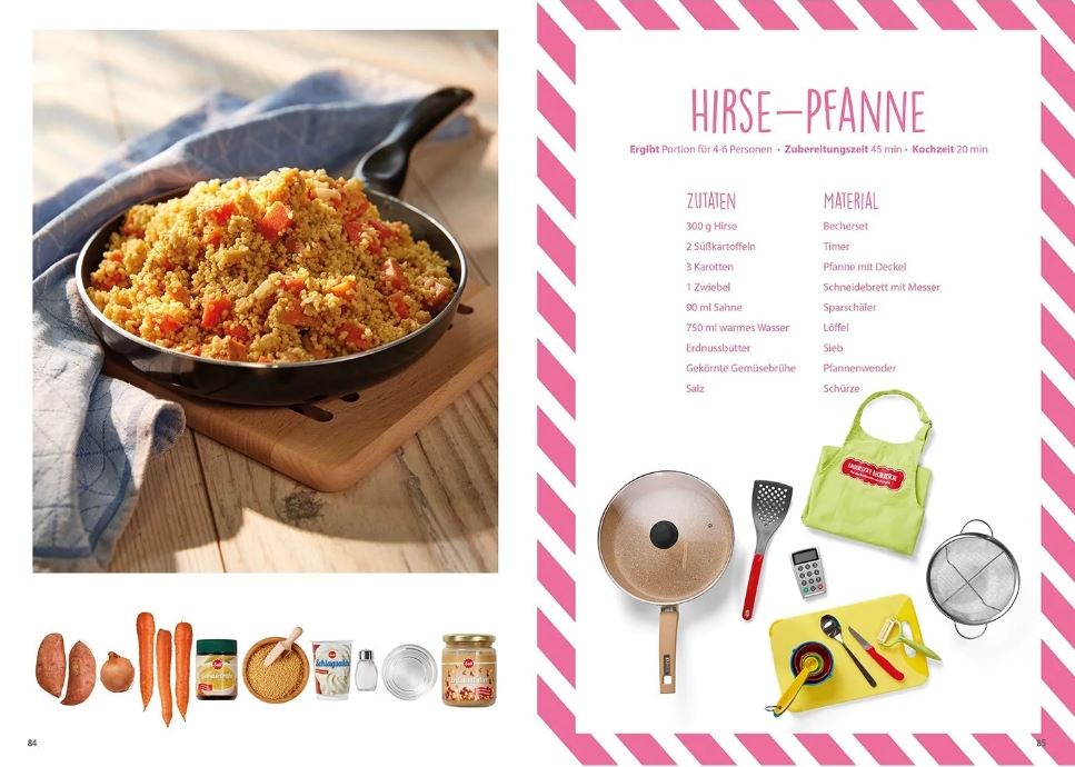 Durch die übersichtlichen Schritt-für-Schritt-Anleitungen können die kleinen Meisterköche alle Gerichte nahezu ohne Hilfe nachkochen. So entdeckt Ihr Kind neben der Begeisterung fürs Kochen, den Umgang mit Zahlen und Mengen, lernt eine Reihenfolge einzuhalten sowie das Ordnen und Sortieren und sammelt viele schöne Erfahrungen.