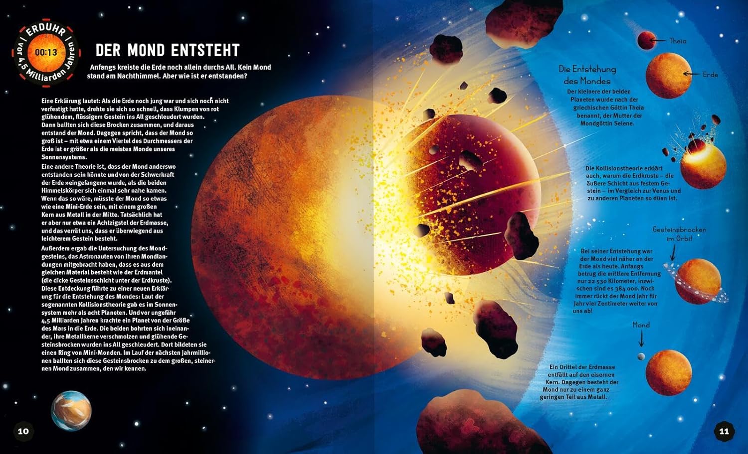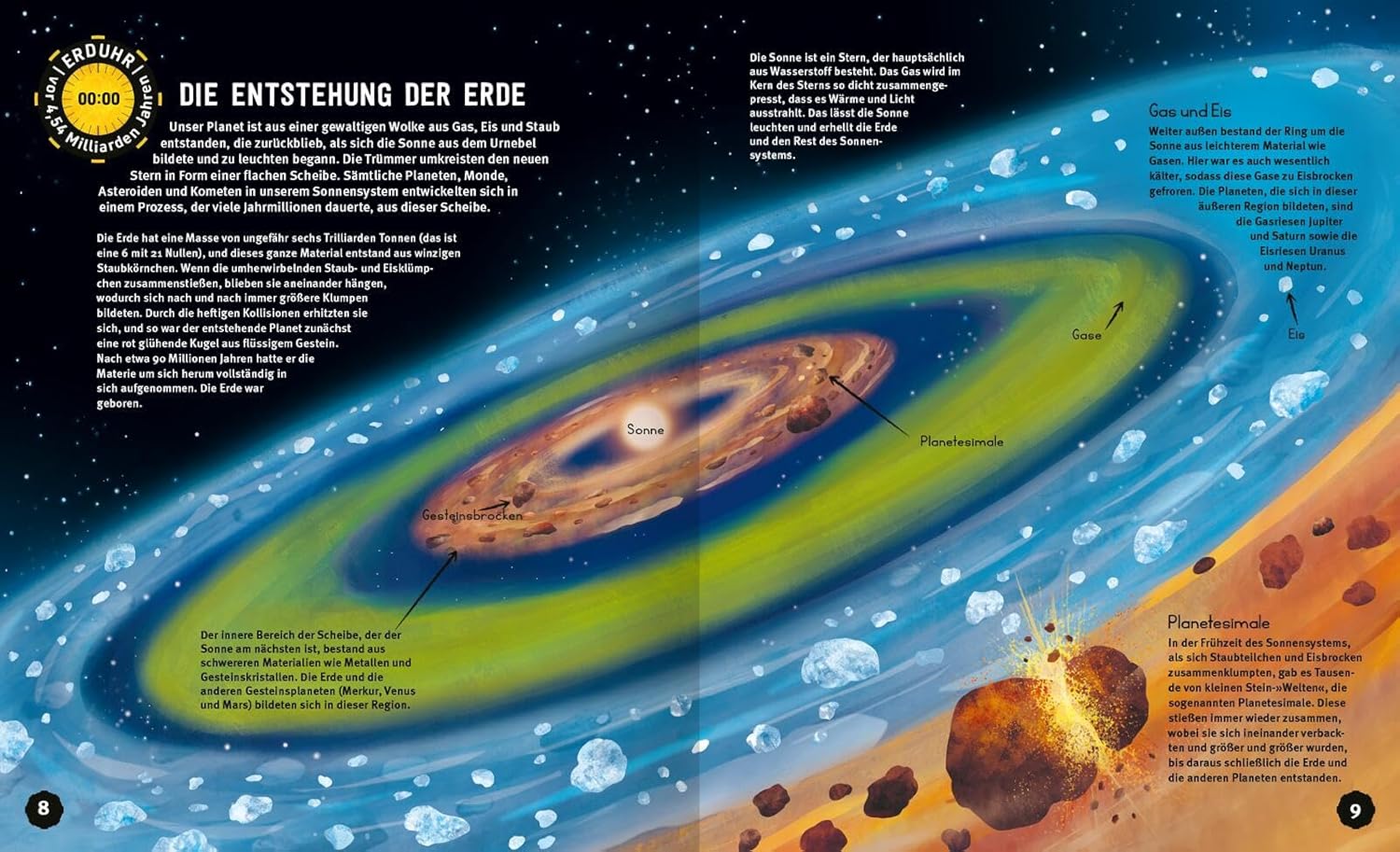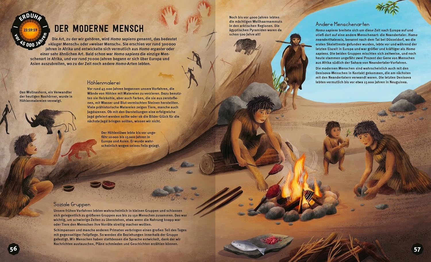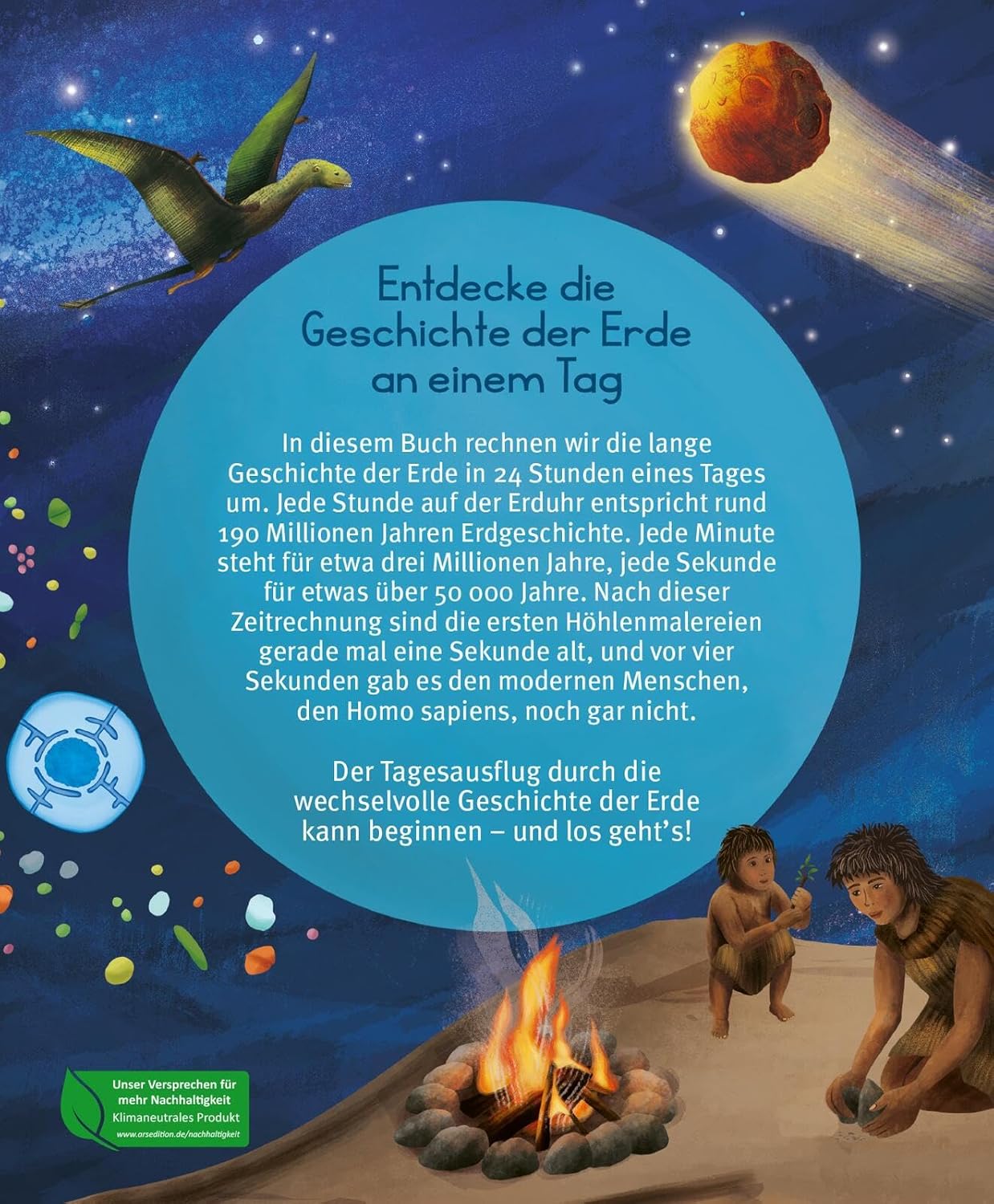 Wie würde die gesamte Geschichte unseres Planeten aussehen, zusammengefasst an einem einzigen Tag? Seit 4,5 Milliarden Jahren dreht sich unser Planet in der Finsternis des Weltalls. In diesem Buch rechnen wir die lange Geschichte der Erde in 24 Stunden eines Tages um. Jede Stunde auf der Erduhr entspricht rund 190 Millionen Jahren Erdgeschichte. Jede Minute steht für etwa drei Millionen Jahre, jede Sekunde für etwas über 50 000 Jahre. Nach dieser Zeitrechnung sind die ersten Höhlenmalereien gerade mal 1 Sekunde alt, und vor 4 Sekunden gab es den modernen Menschen, den Homo sapiens, noch gar nicht.