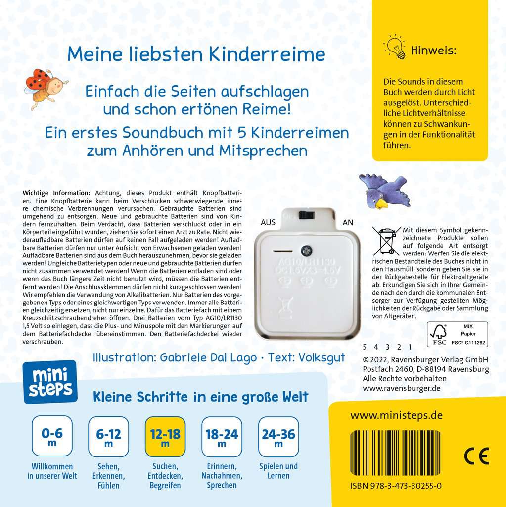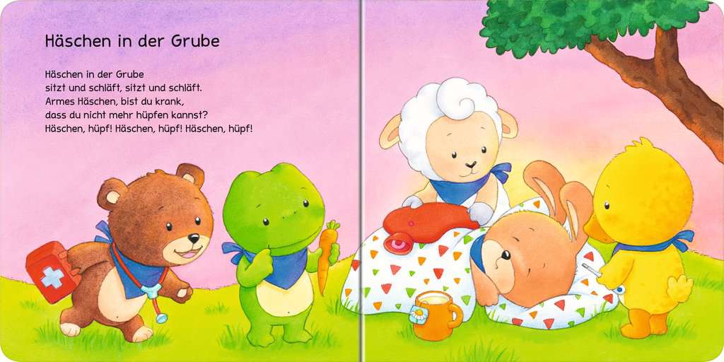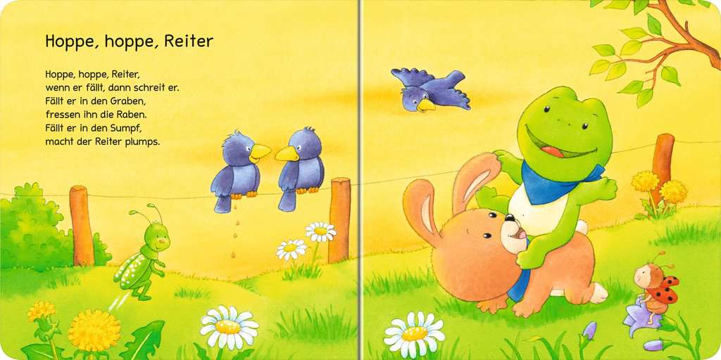 Die Kinderreime erklingen wie durch Zauberei, wenn die Seiten aufgeschlagen werden. So können schon Einjährige ihren Lieblingsvers selbst aussuchen und ohne Hilfe anhören. „Heile, heile Segen“, „Ri-ra-rutsch“, „Es regnet, es regnet“, „Hoppe, hoppe, Reiter“ und „Häschen in der Grube“ sind für Kleinkinder der ideale Einstieg in die spannende Welt der Reime!