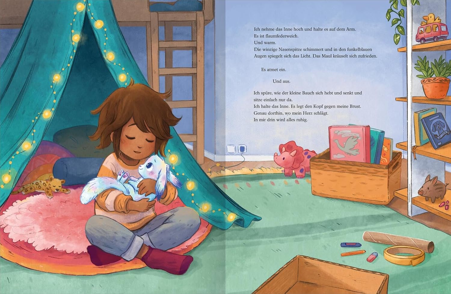 Die eigenen Gefühle kennen und ernst nehmen, sich bewusst mit den eigenen Emotionen auseinandersetzen und die Umgebung besser verstehen – das sind auch Themen für unsere Kleinsten. Dieses Bilderbuch lädt mit dem kleinen Inne dazu ein, im hektischen Alltag das Innehalten zu lernen, ruhig zu werden und gemeinsam die kleinen Momente des Lebens zu genießen. Das Inne ist zart und klein und darauf angewiesen, dass es wahrgenommen wird. Sobald es aber im Arm gehalten wird, strahlt es eine wunderbare Ruhe aus, bringt die Menschen zusammen und berührt die Herzen. Zum Vorlesen für Kinder ab 3 Jahren, und für alle, die auch mal Innehalten möchte.
