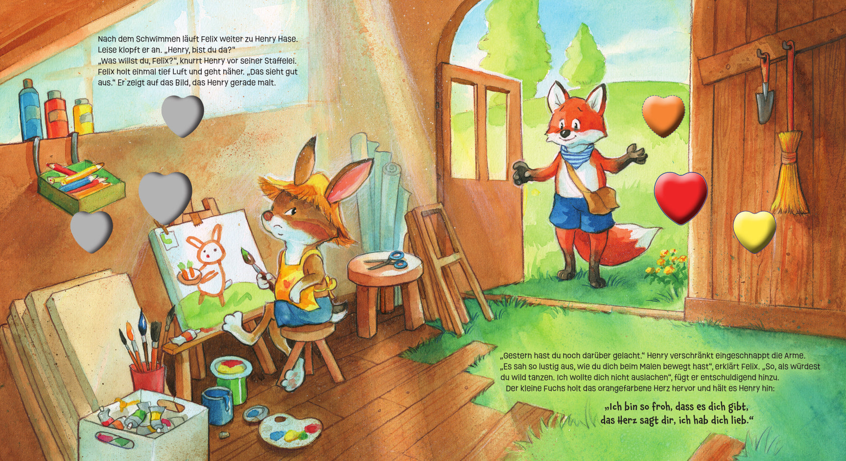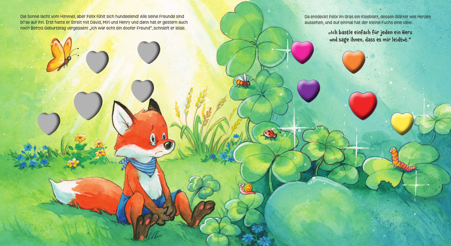 Doch zum Glück hat Felix eine Idee: Er wird für jede Freundin und jeden Freund ein Herz basteln und sich bei ihnen entschuldigen.