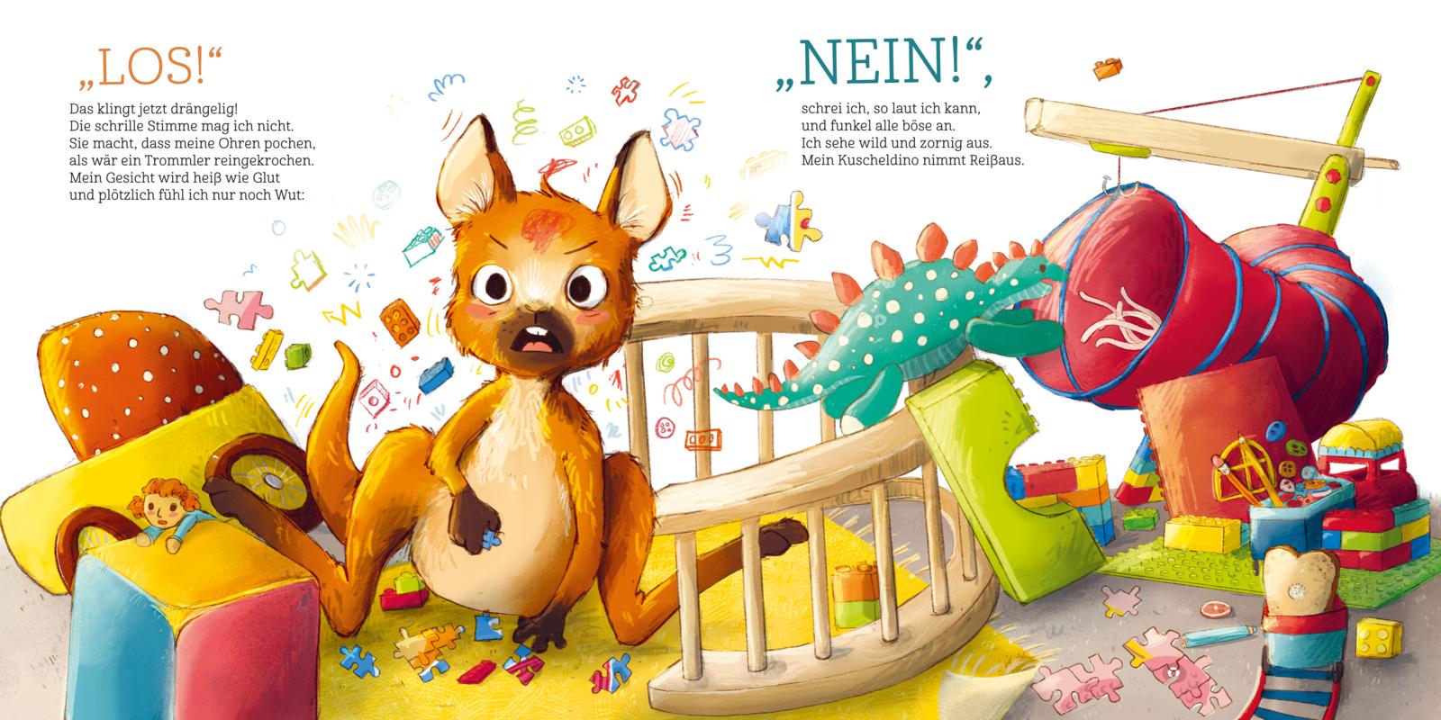 Die erfahrene Journalistin, Fachautorin und Mutter transportiert in dieser witzigen Reimgeschichte noch einmal ganz neu die Kernbotschaften ihrer Elternratgeber: dass es in Ordnung ist, sprunghaft, wild und verletzlich zu sein, aber auch anstrengend für alle Beteiligten. Dass hinter scheinbar bockigem Verhalten meist Ängste, Schwierigkeiten mit Übergängen und andere komplizierte Gefühle stehen. Und dass der Weg da raus nicht über Druck und Strafen führt, sondern Verständnis, Kommunikation und liebvolle Co-Regulation. So nehmen Kinder aus der Geschichte mit, dass sie gut und richtig sind, so wie sie sind, und über ihre Gefühle sprechen können, anstatt nur Nein zu schreien.