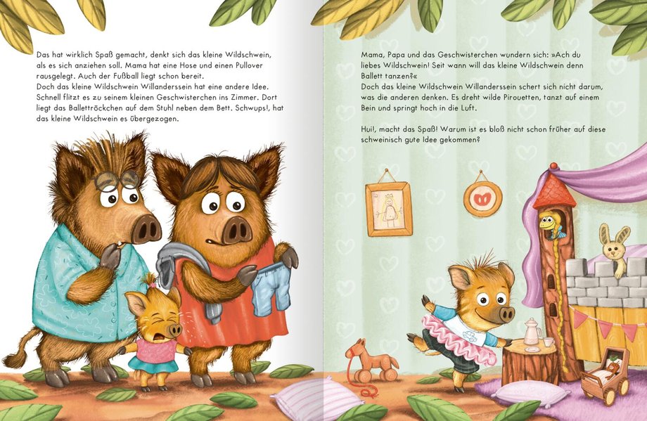Die dritte Geschichte handelt von einem selbstbewussten kleinen Wildschwein, das so manches anders macht, als von ihm erwartet wird – und Schwung in den Kinderalltag bringt! Mit der wichtigen Botschaft: Du bist richtig, so wie du bist!