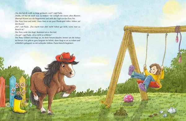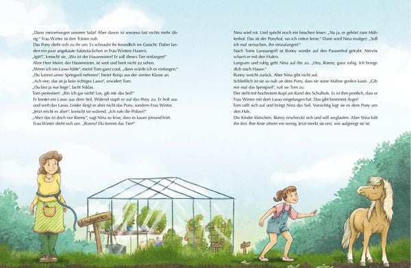 Pony Ella möchte so gerne genauso groß werden wie die Pferde auf ihrer Weide, aber um die Allergrößte zu sein, muss sie gar nicht wachsen. Paula bekommt Besuch von einem Pony zum Tee. Tim besucht einen Ponyhof und findet, dass Ponys nur Mädchenkram sind, bis er Schoko kennenlernt. Und das Pferd Milchmann hinterlässt ziemlich große Spuren in Hermans Wohnzimmer. Oje, das gibt bestimmt Ärger!