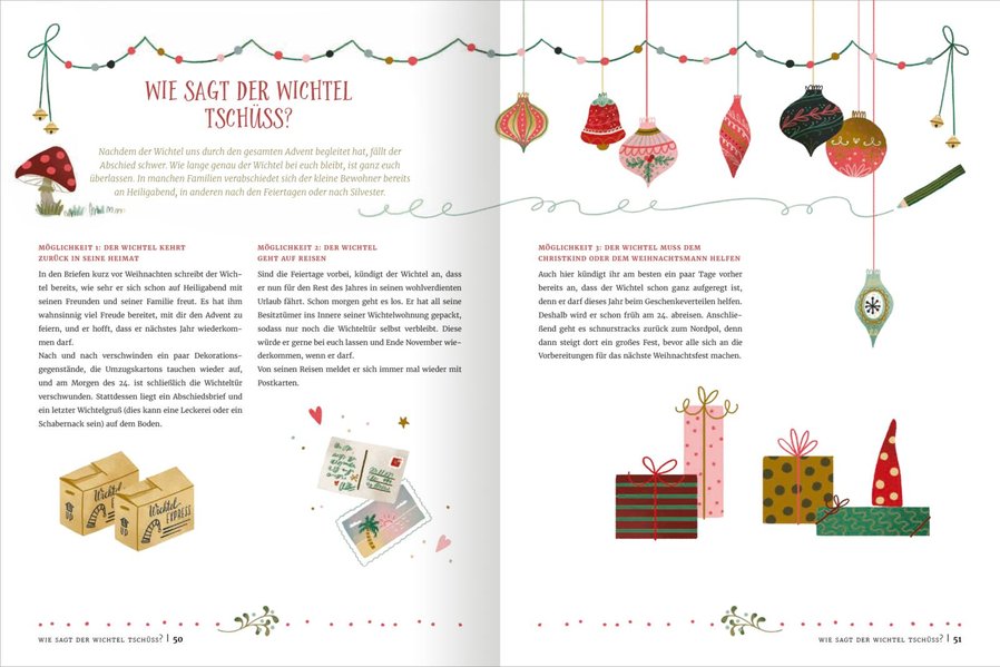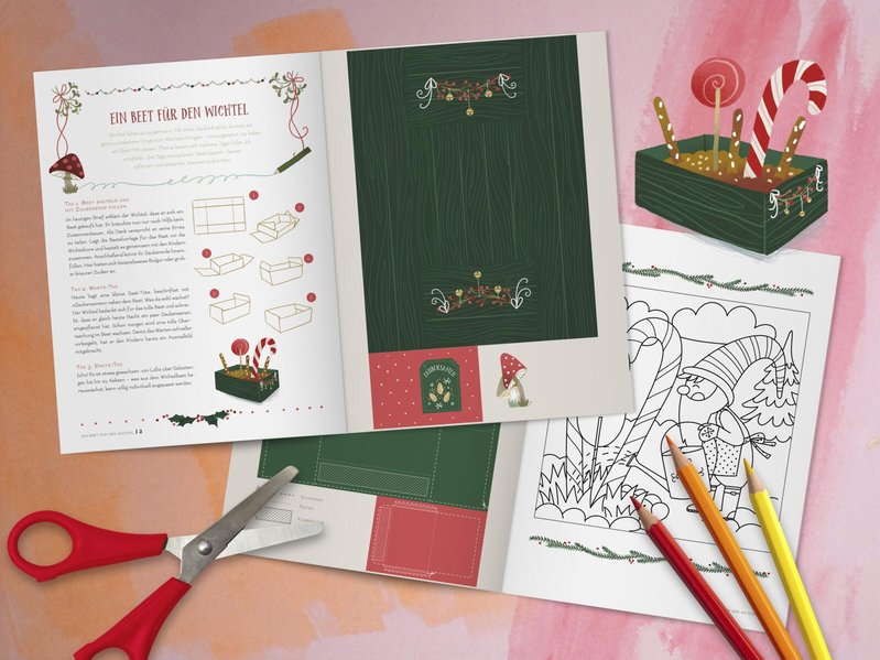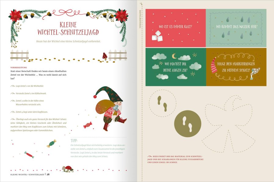 Mit diesem Buch lässt sich eine Wichteltüre während der Adventszeit ohne viel Arbeitsaufwand liebevoll und abwechslungsreich bespielen.